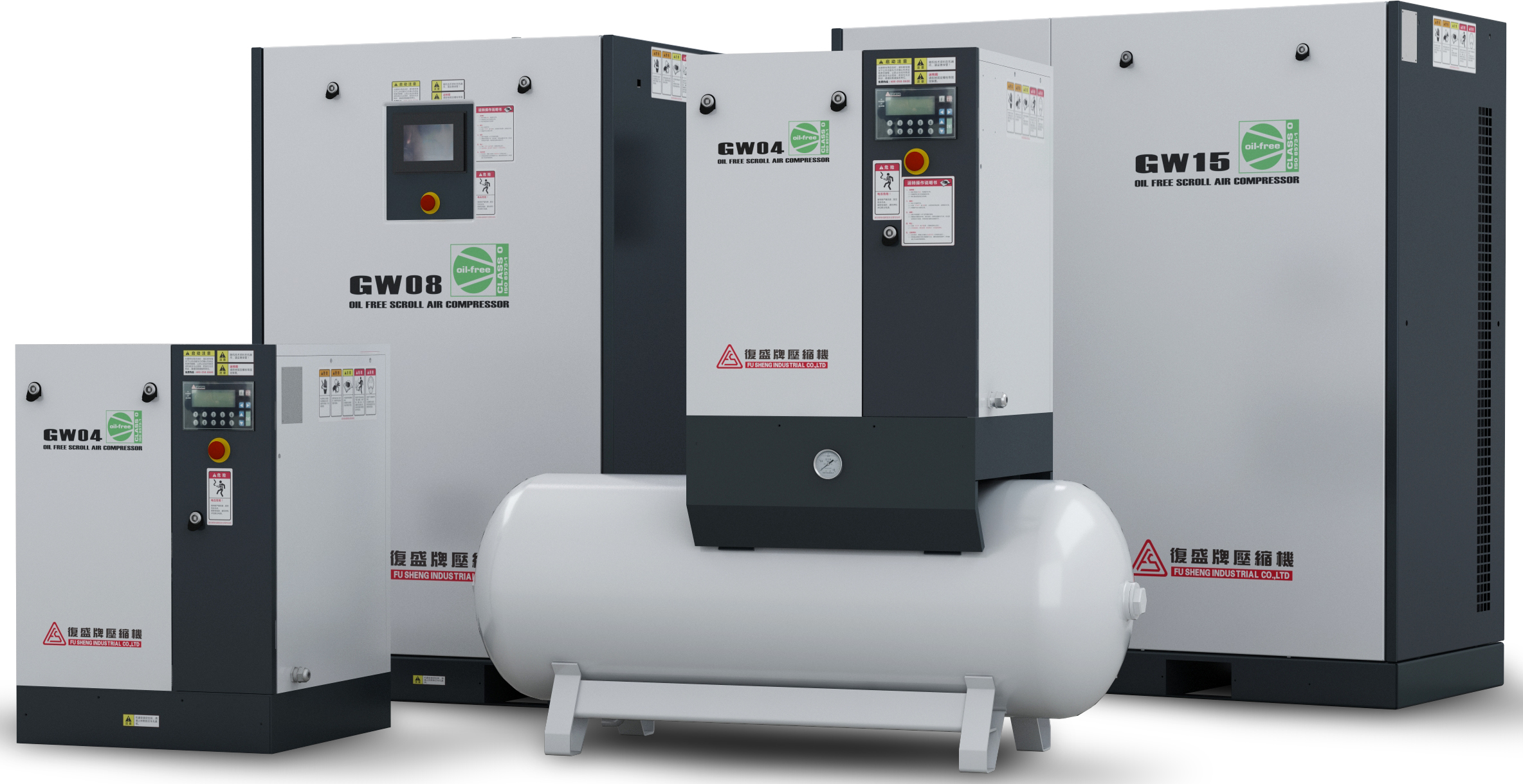 GW系列無油渦卷空壓機(jī)選用大彩色觸摸屏幕,支持16種語言;機(jī)組采用IE3高效電機(jī),震動(dòng)值降到5mm/s以下,噪音值低至56dB(A)。無油渦卷空壓機(jī)從源頭控制,壓縮過程無任何潤滑油參與,達(dá)到ISO 8573-1 CLASS 0 純凈空氣品質(zhì)。屆時(shí),復(fù)盛期待您的光臨,并與您一起分享及探討最新的應(yīng)用。